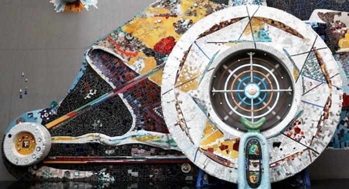 こちらが、平成29年9月に再現された、新たなフェニックス・モザイク「糸車の幻想」です。