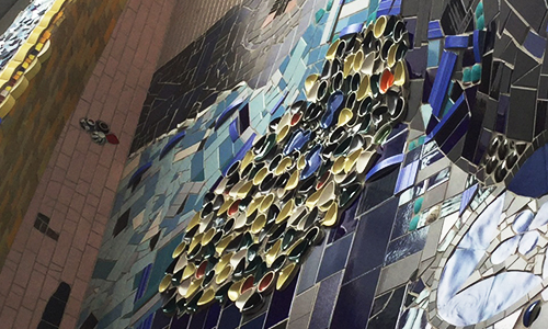 フェニックス・モザイクには、使い捨てられたタイルや、使われなくなり眠っていたやきもの、陶片タイルを再利用し、よみがえらせようという願いが込められています。